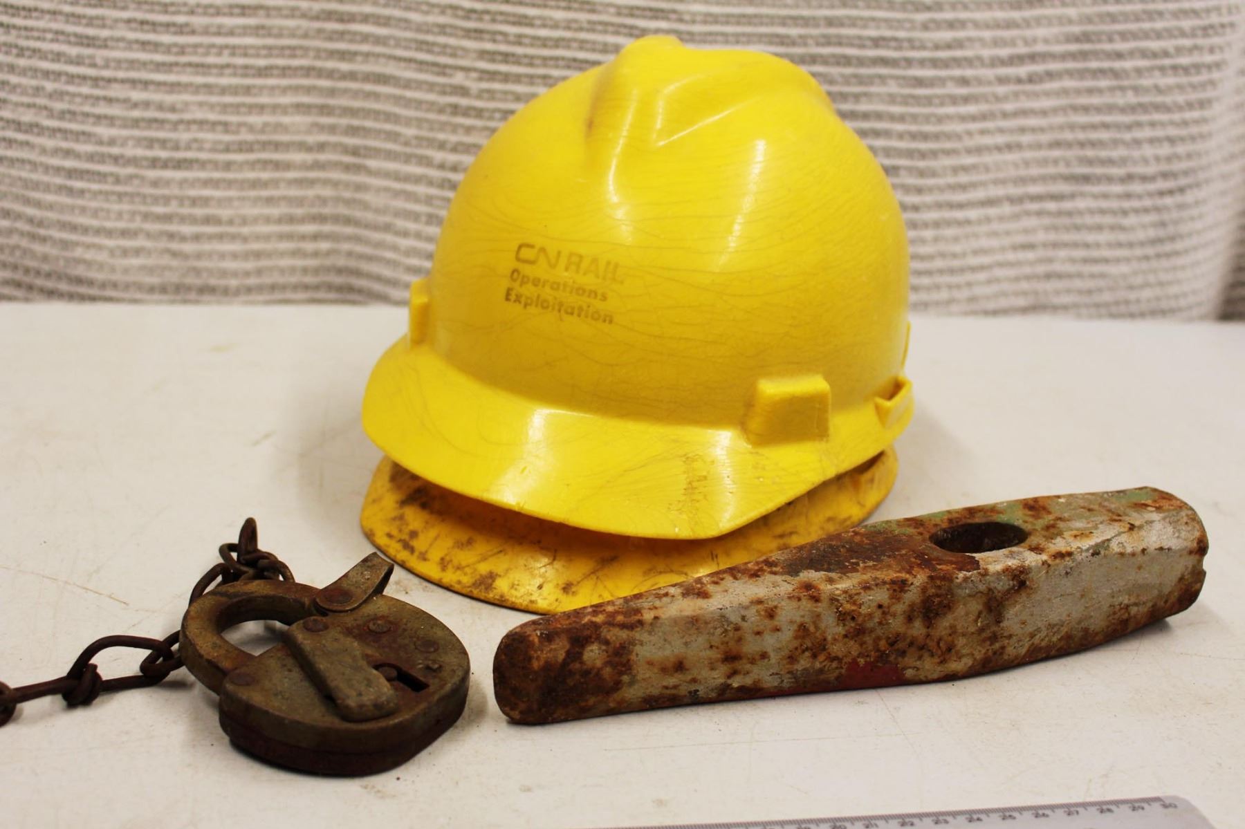 (2) CN Rail Hard Hats, Vintage Lock and Spike