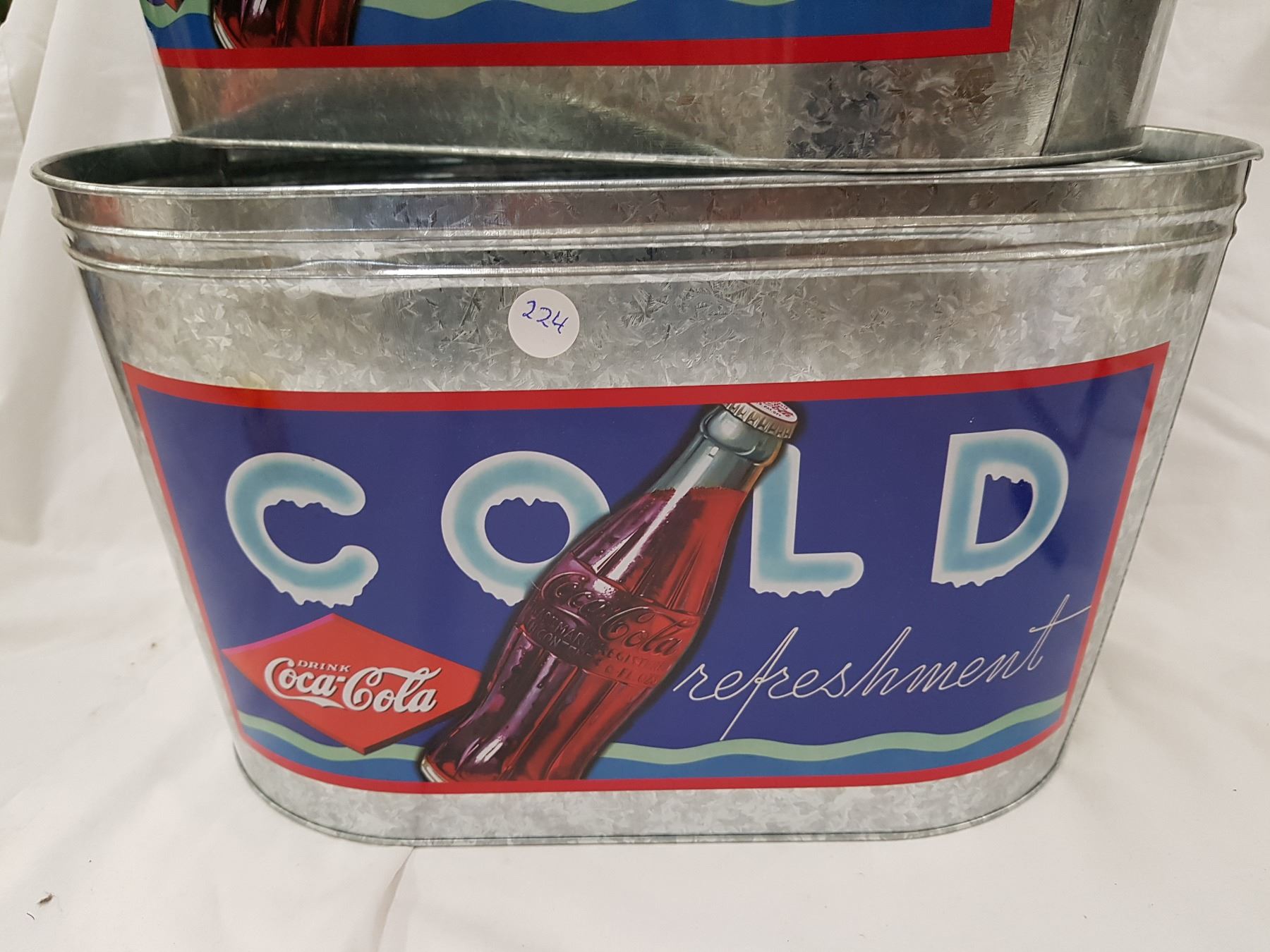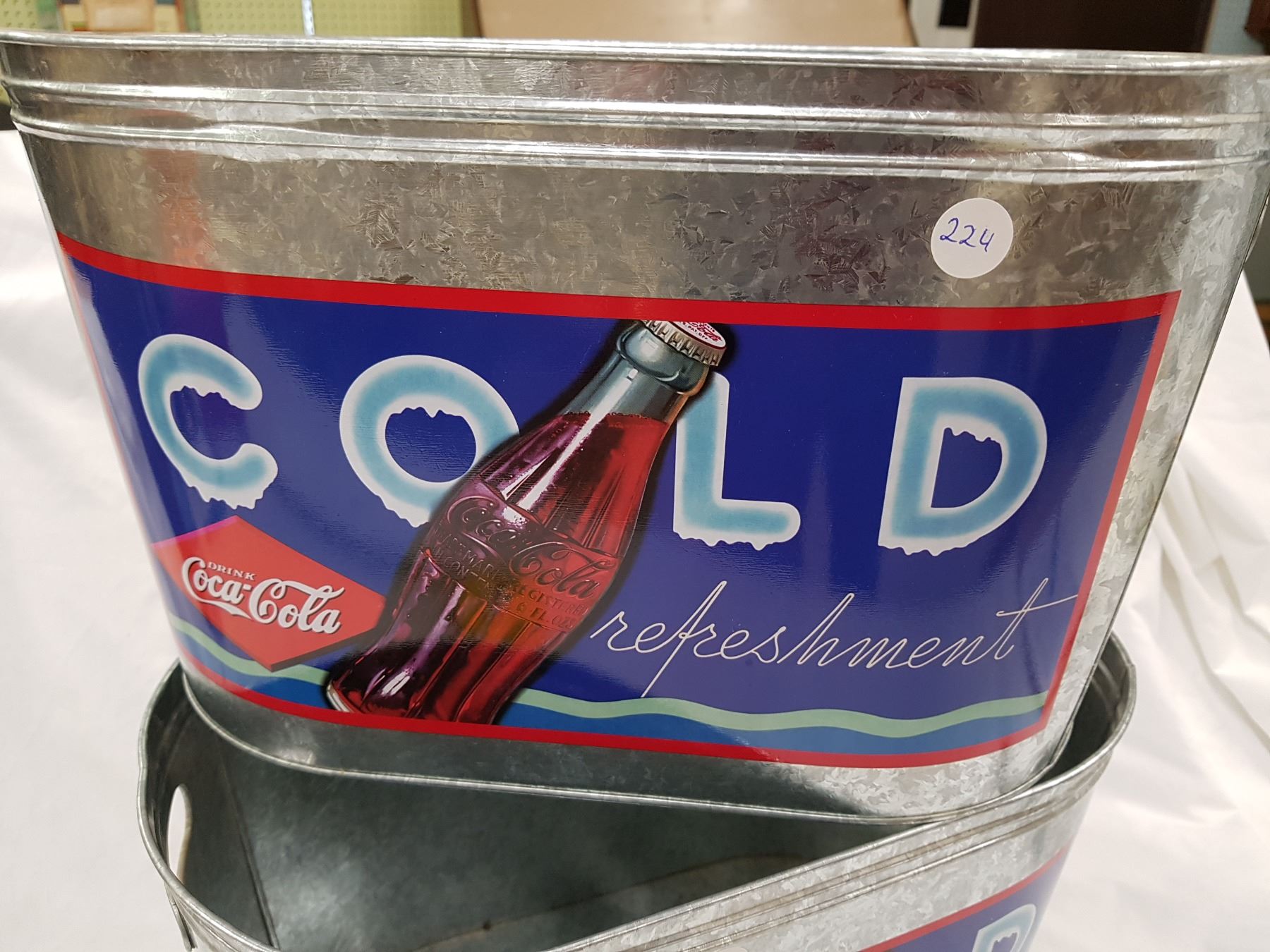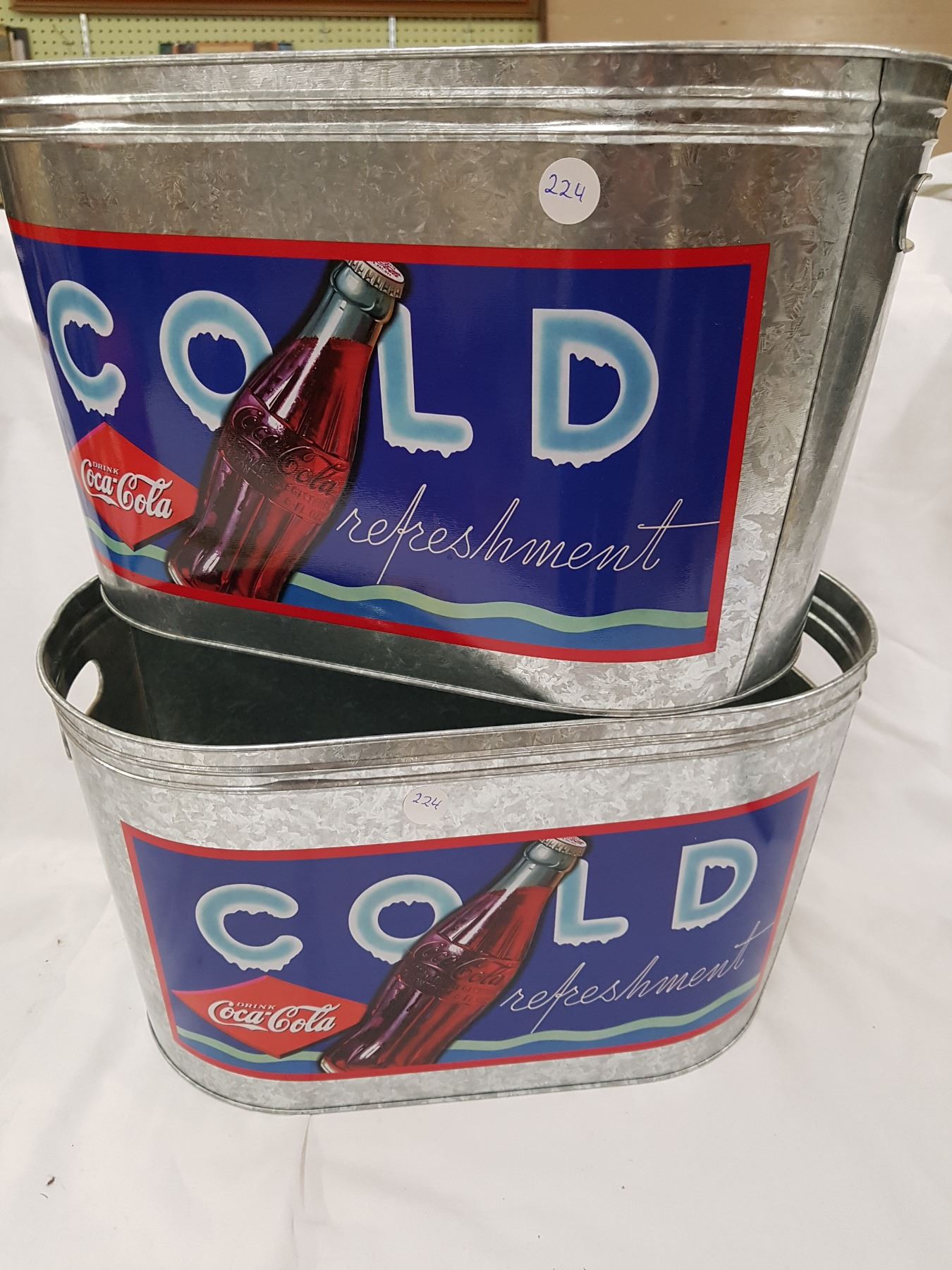 2 COCA-COLA TIN ICE BUCKETS, 16 INCHES