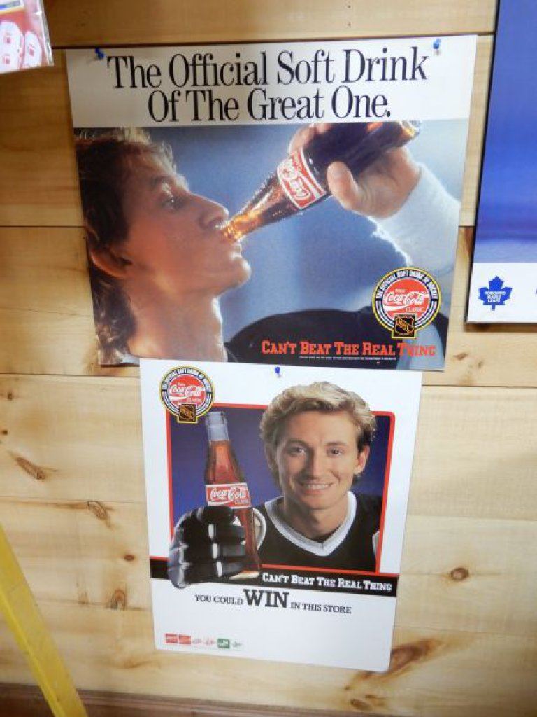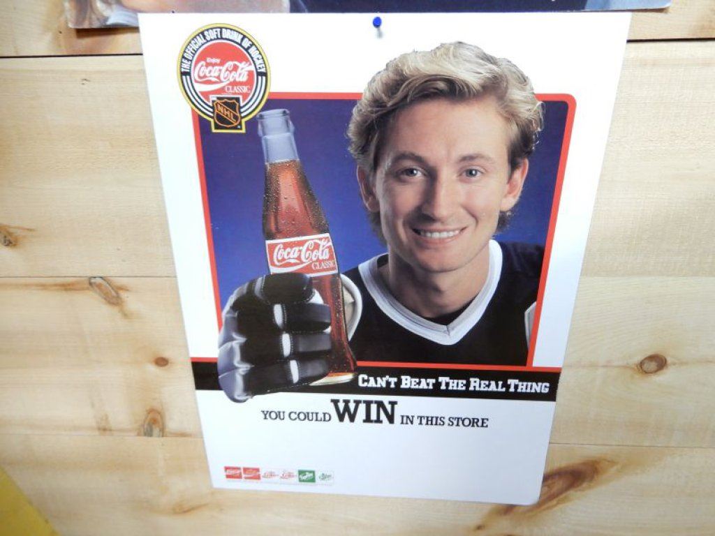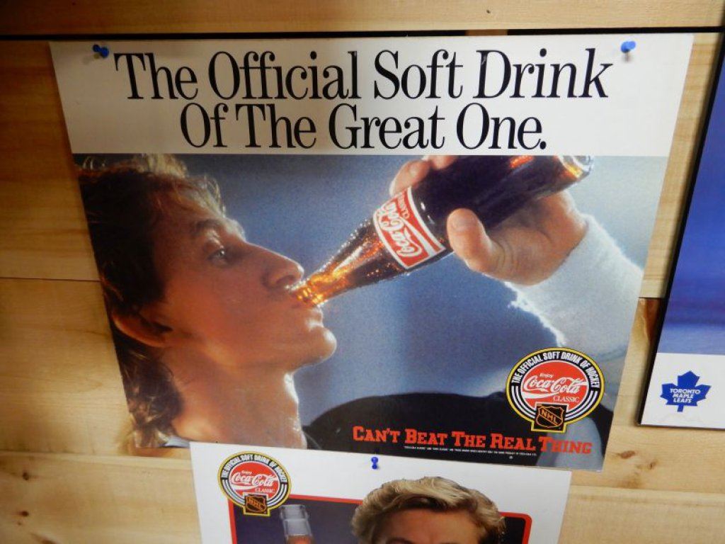 2 COCA-COLA WAYNE GRETSKY D/S CARDBOARD POSTERS 22" X 18" - 24" X 18" - GOOD CONDITION LOCATION: UPPER BACKROOM
