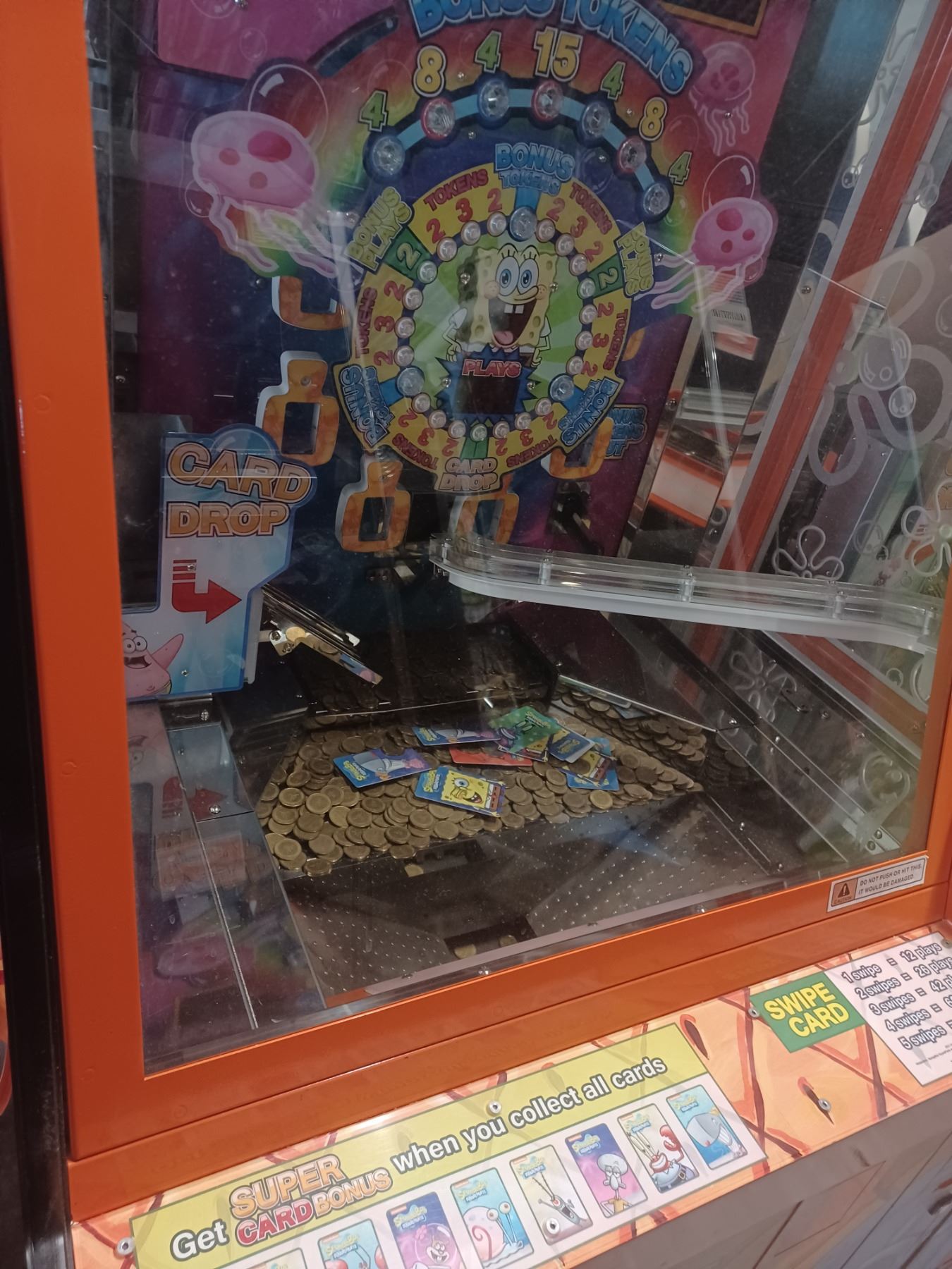 2 - COIN PUSH "SPONGE BOB SQUARE PANTS" ATTACHED ARCADE MACHINE/DOUBLE WIDE.