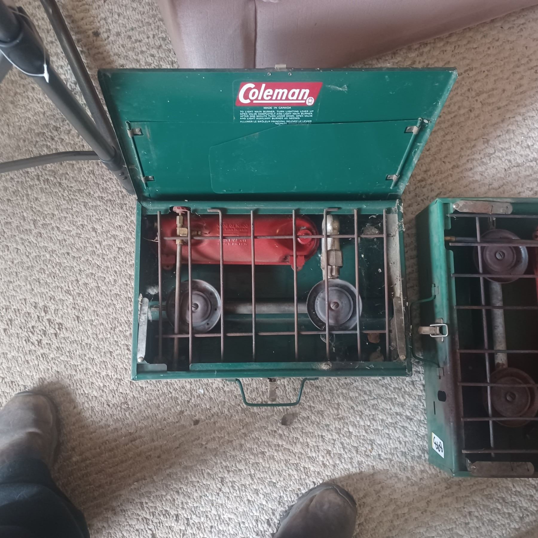 2 COLEMAN FUEL 2 BURNER CAMP STOVES