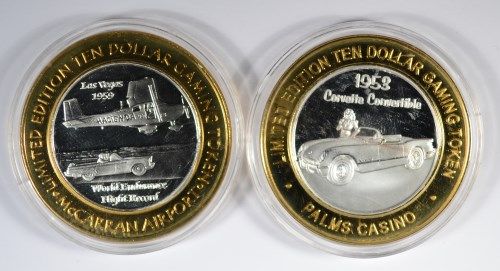 GET THESE TWO NICE TOKENS, EACH CONTAINING .6 OUNCES OF .999 SILVER EACH, FEAT CARS AND A PLANE , EST. $65.00 TO $70.00 SILVERTOWNE AUCTIONS IS PROUD TO BE A TOP RANKED AUCTION ON PROXIBLOG RATING OF ONLINE AUCTIONS
