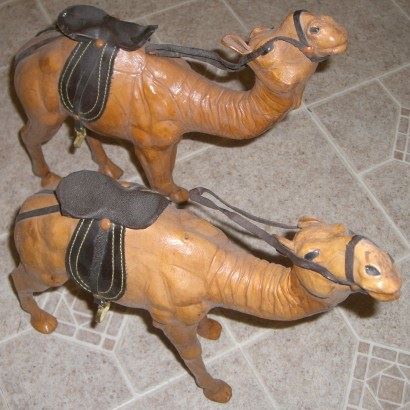 2 COLLECTIBLE LEATHER CAMELS WITH LEATHER SADDLES-THEY STAND APPROX 10 INCHES HIGH!! CAMELS CAME OUT OF SAFE!! ***Coin, Currency & All Items Listed in this auction - Grades, Conditions and Values are not Safe Deposit Coins LLC Responsibilty. Grades, Condition and Values are determined by Consigner(s) & Buyers ONLY
