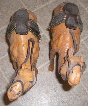 2 COLLECTIBLE LEATHER CAMELS WITH LEATHER SADDLES-THEY STAND APPROX 10 INCHES HIGH!! CAMELS CAME OUT OF SAFE!! ***Coin, Currency & All Items Listed in this auction - Grades, Conditions and Values are not Safe Deposit Coins LLC Responsibilty. Grades, Condition and Values are determined by Consigner(s) & Buyers ONLY