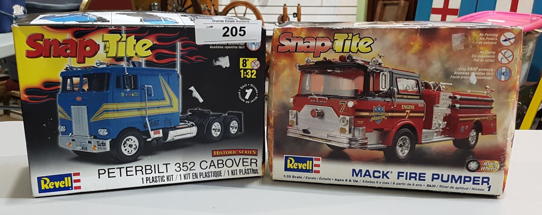 PETERBILT 352 CABOVER & MACK FIRE PUMPER, BOTH OPEN BOX