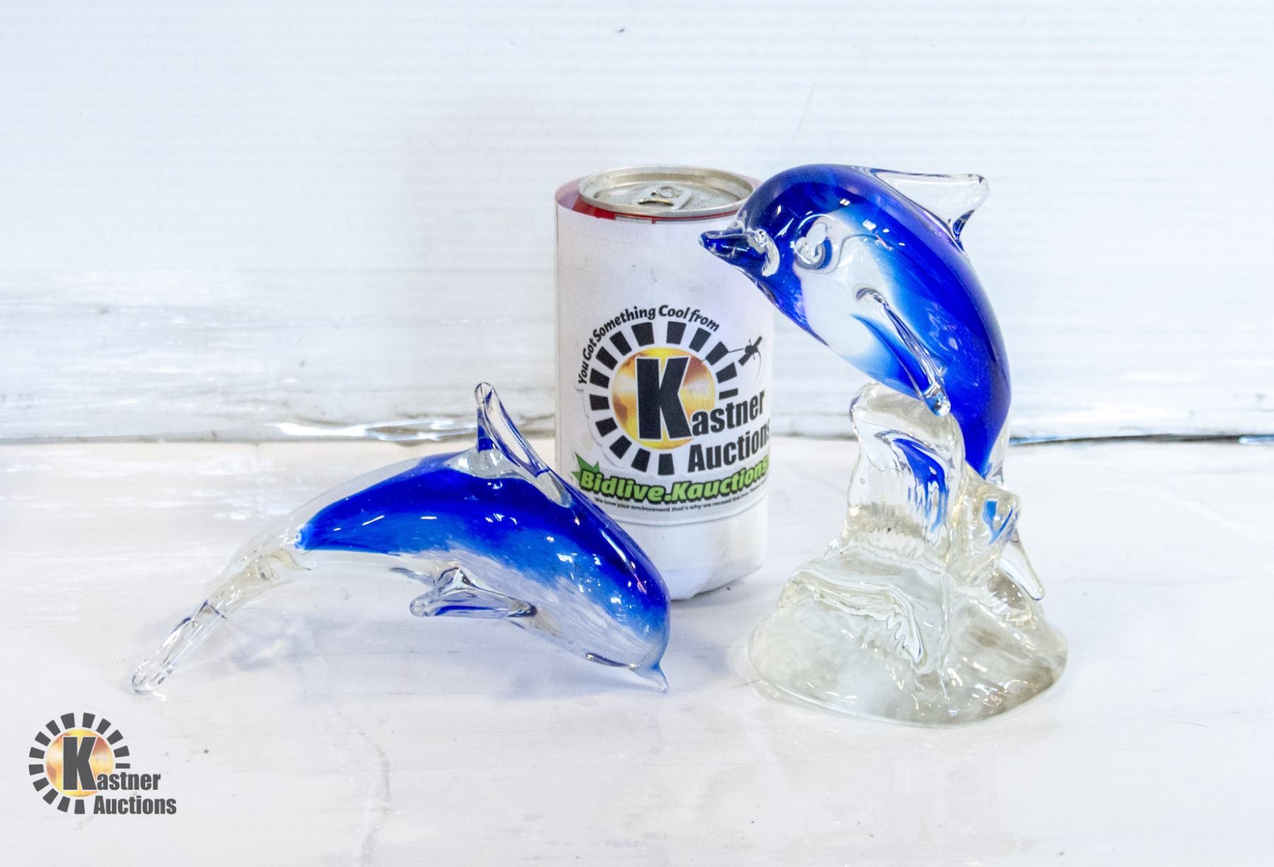 2 COLLECTOR BLUE/GLASS ORNATE DOLPHINS