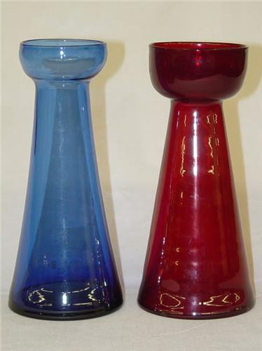 (2) COLORED HYACINTH VASES: (1) 8 1/4" COBALT & (1) 8" RUBY - BOTH W/ PONTILS
