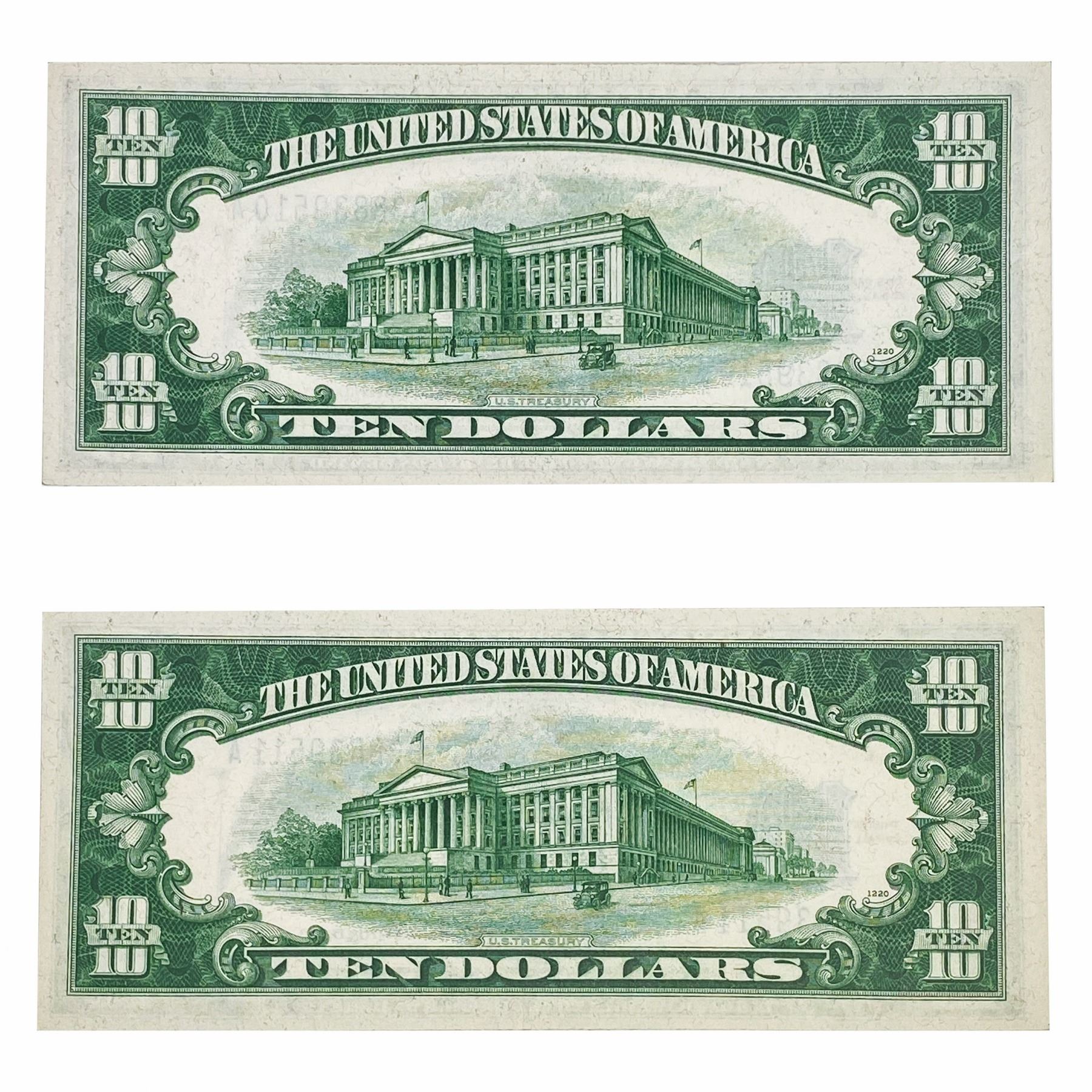 (2) CONS. 1934-C $10 SILVER CERTIFICATES GEM UNC