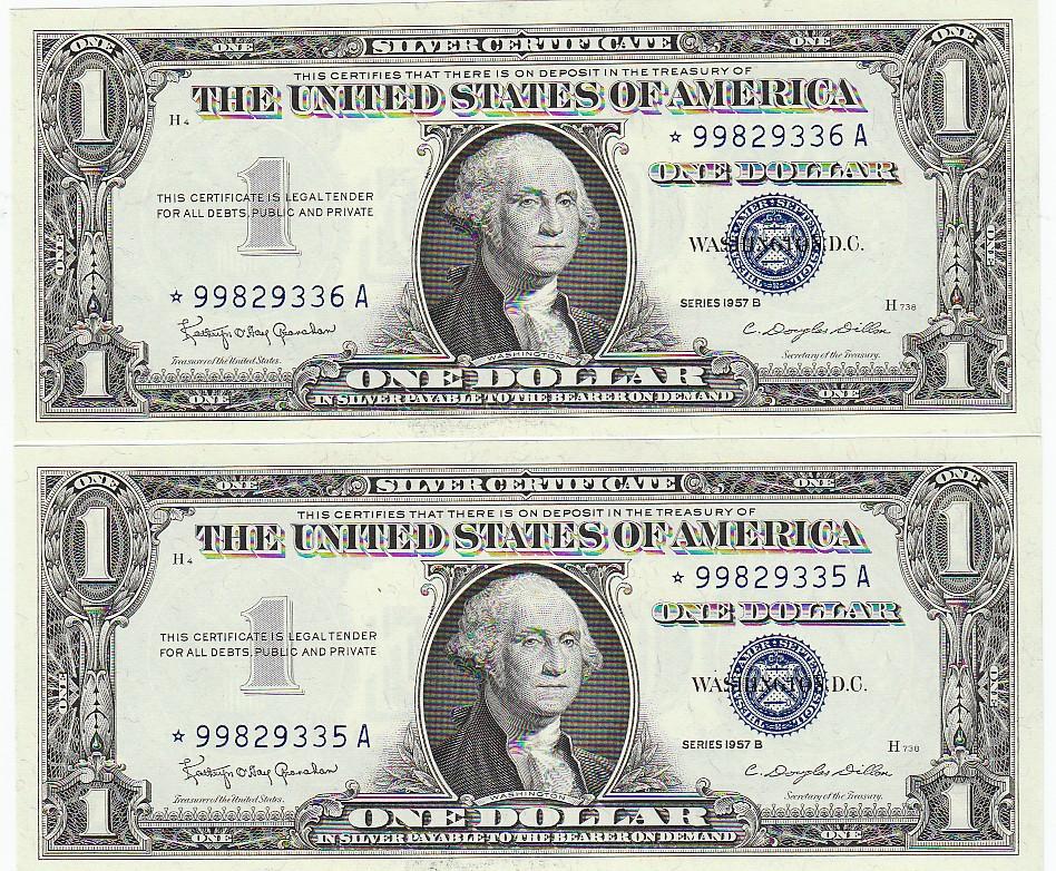 2 CONSECUTIVE STAR NOTES BLAZING APPEAL $1 GEM 1957