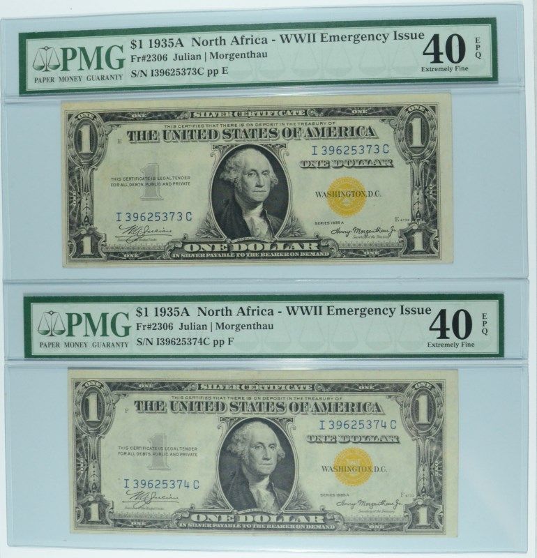 ( 2 ) CONSECUTIVELY NUMBER FR#2306 NORTH AFRICA NOTES, BOTH PMG 40 EPQ, RARE!!