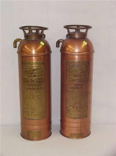 (2) COPPER UNDERWRITERS FIRE EXTINGUISHERS W/OUT HOSE - DENTS and WEAR;