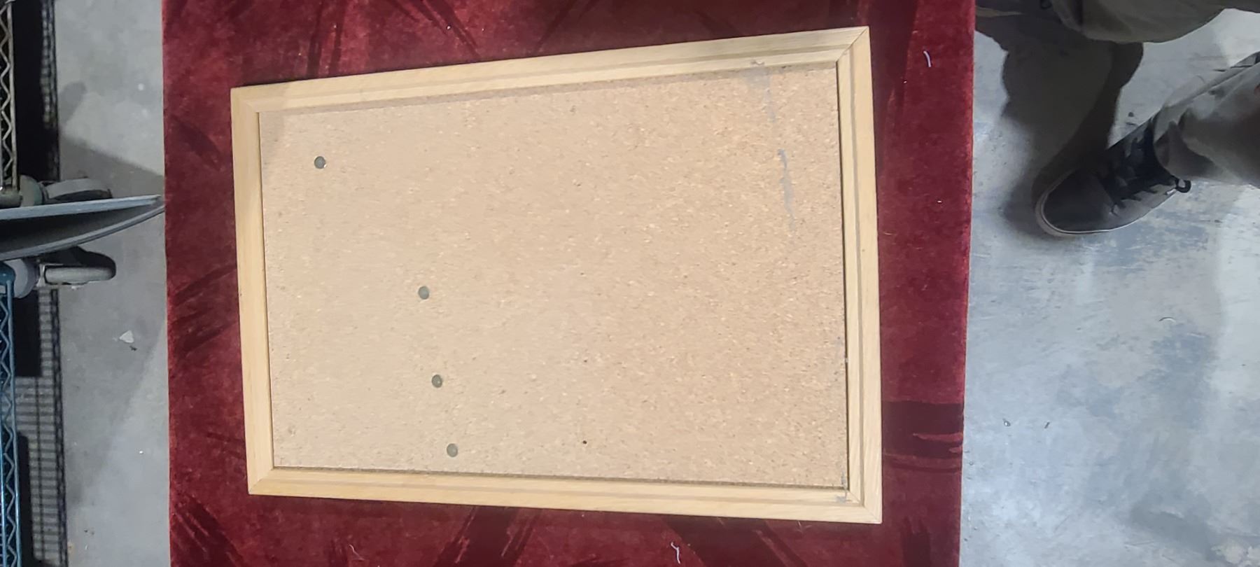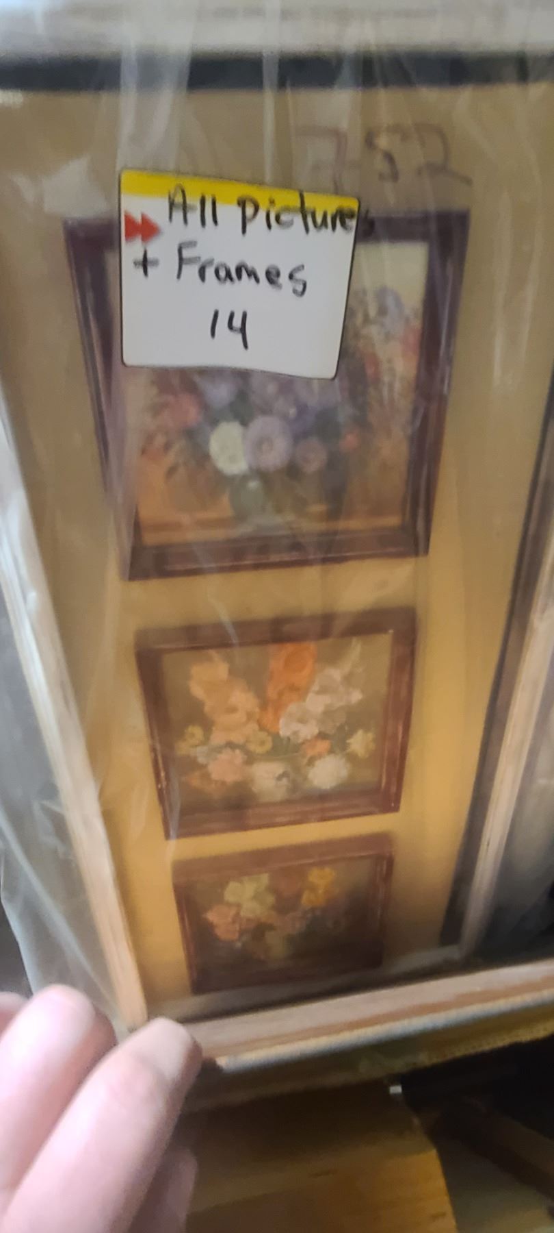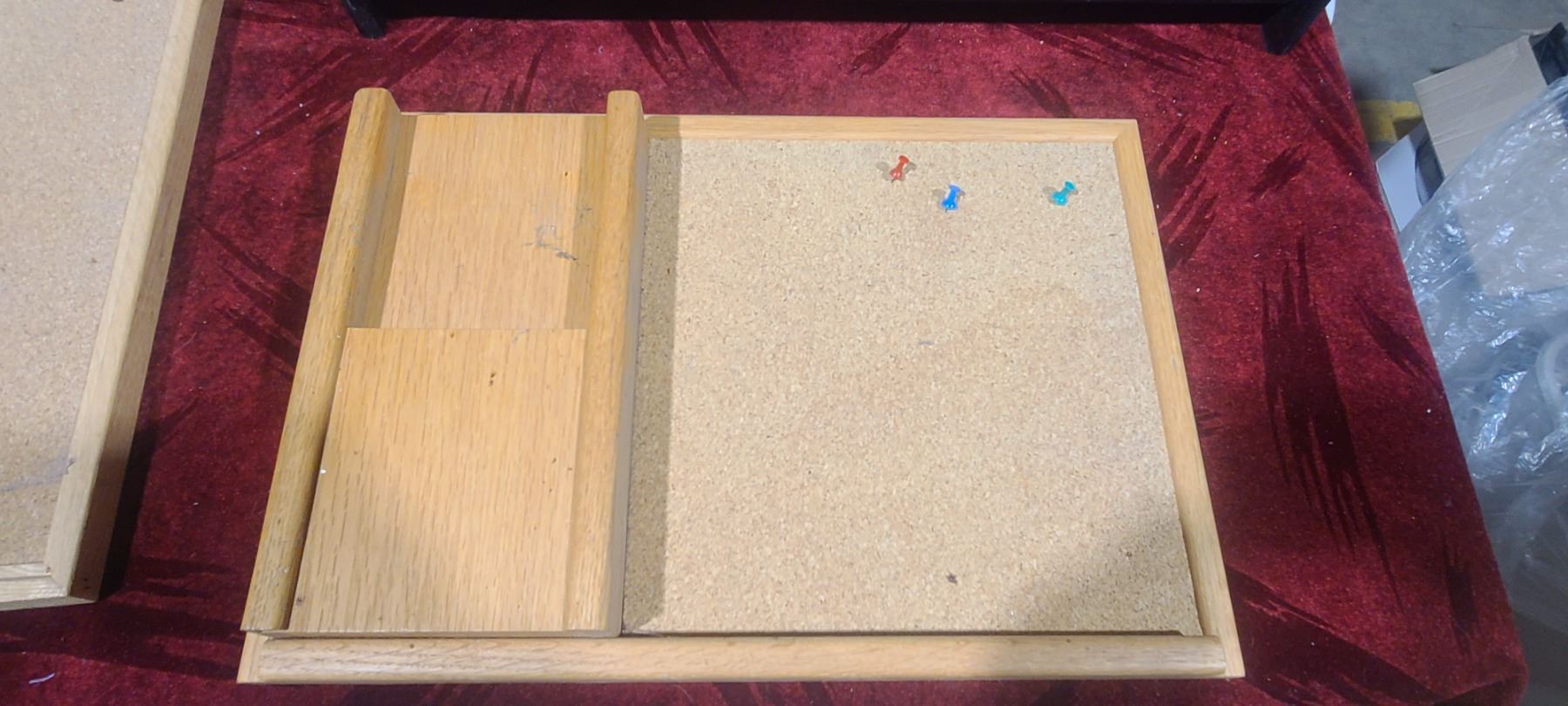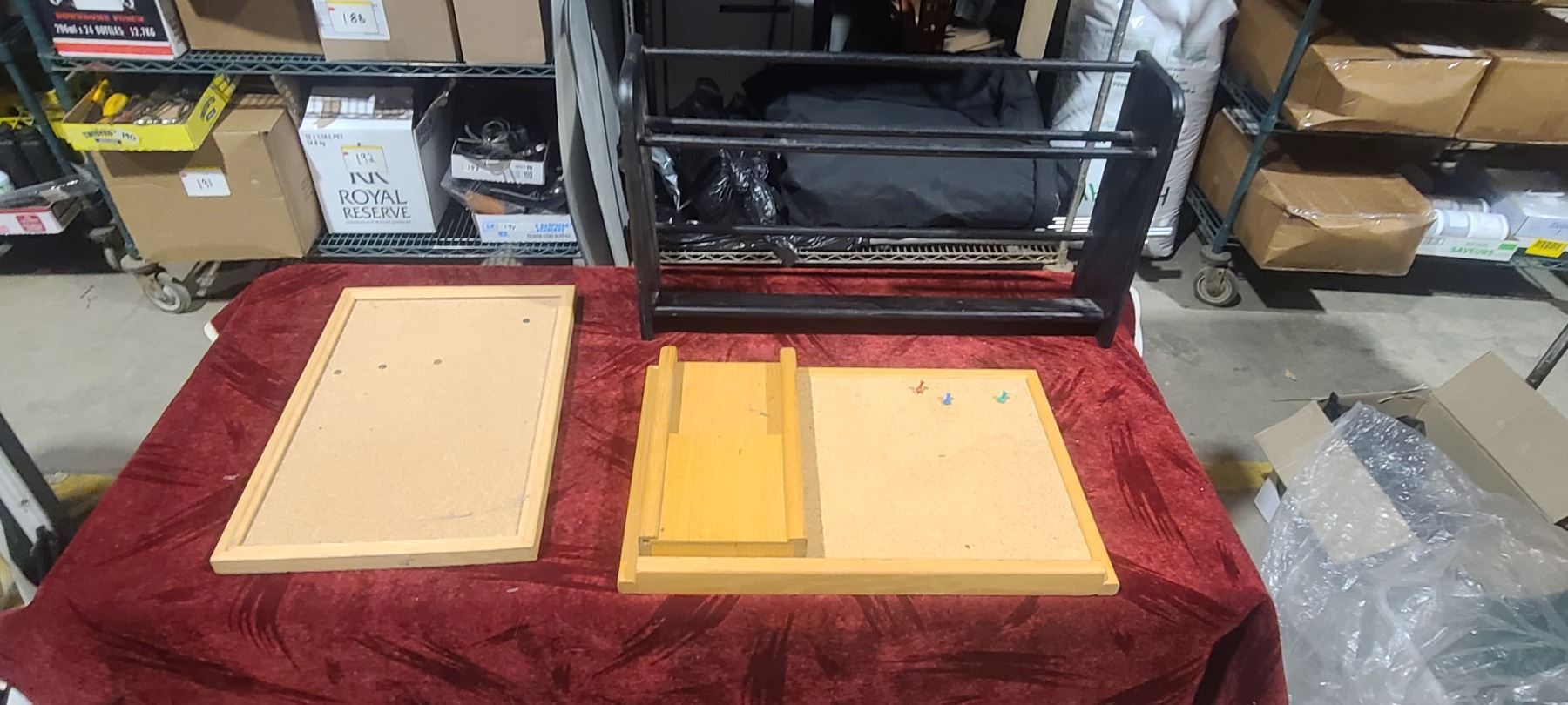 2 CORK BORDS, SHOE SHELF, PICTURES AND FRAMES