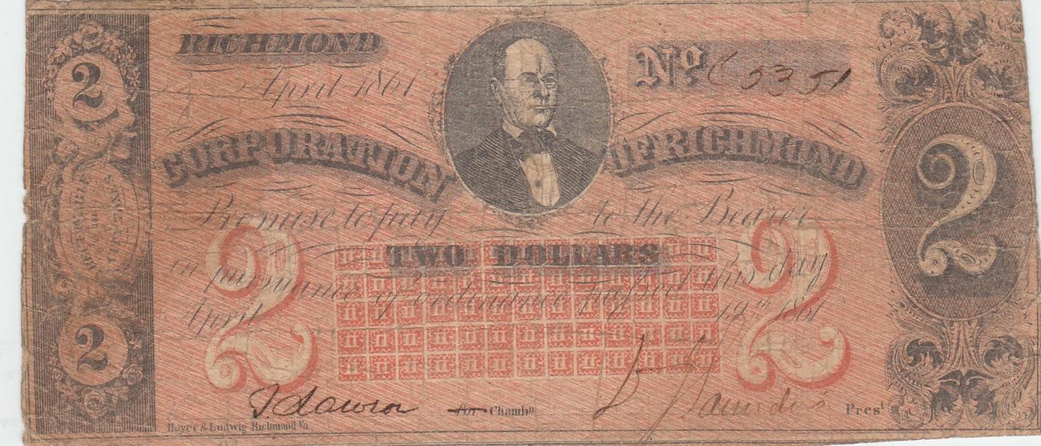 $2 CORPORATION OF RICHMOND RARER NOTE 1864