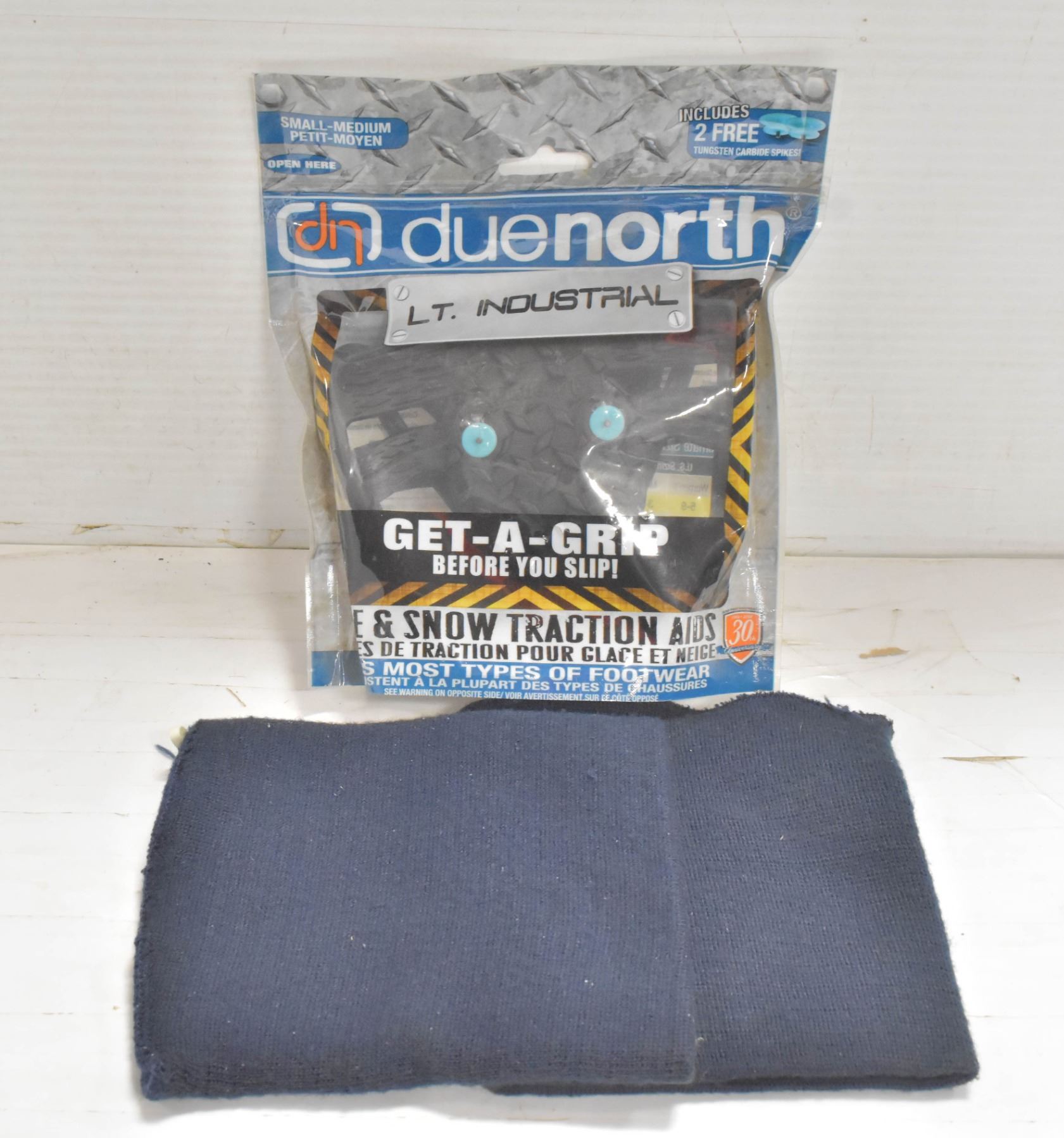 GRIPS WITH TUNGSTEN CARBIDE SPIKES , FITS OVER BOOT, SIZE SMALL-MEDIUM/ 3-7 NECK WARMER W 5.5" X L 6" **ALL ITEMS MUST BE REMOVED BY 5PM SATURDAY, MARCH 25TH 2023. ALL REMAINING ITEMS WILL BE SUBJECT TO A $6.00 PER DAY STORAGE CHARGE. ANY ITEMS REMAINING AFTER MONDAY, APRIL 10TH, 2023 WILL BE CONSIDERED FORFEITED. NO REFUNDS WILL BE ISSUED FOR FORFEITED ITEMS. TO SCHEDULE A PICK UP APPOINTMENT CLICK HERE