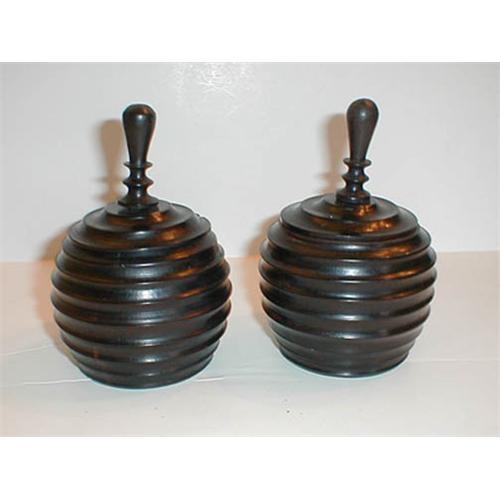 Crisp, clean lines make this pair of covered, round, ebony boxes outstanding! These boxes are ageless!</em></td>