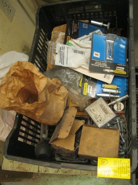2 CRATES OF MISC. HARDWARE, SCREWS, NUTS, BOLTS, ETC.