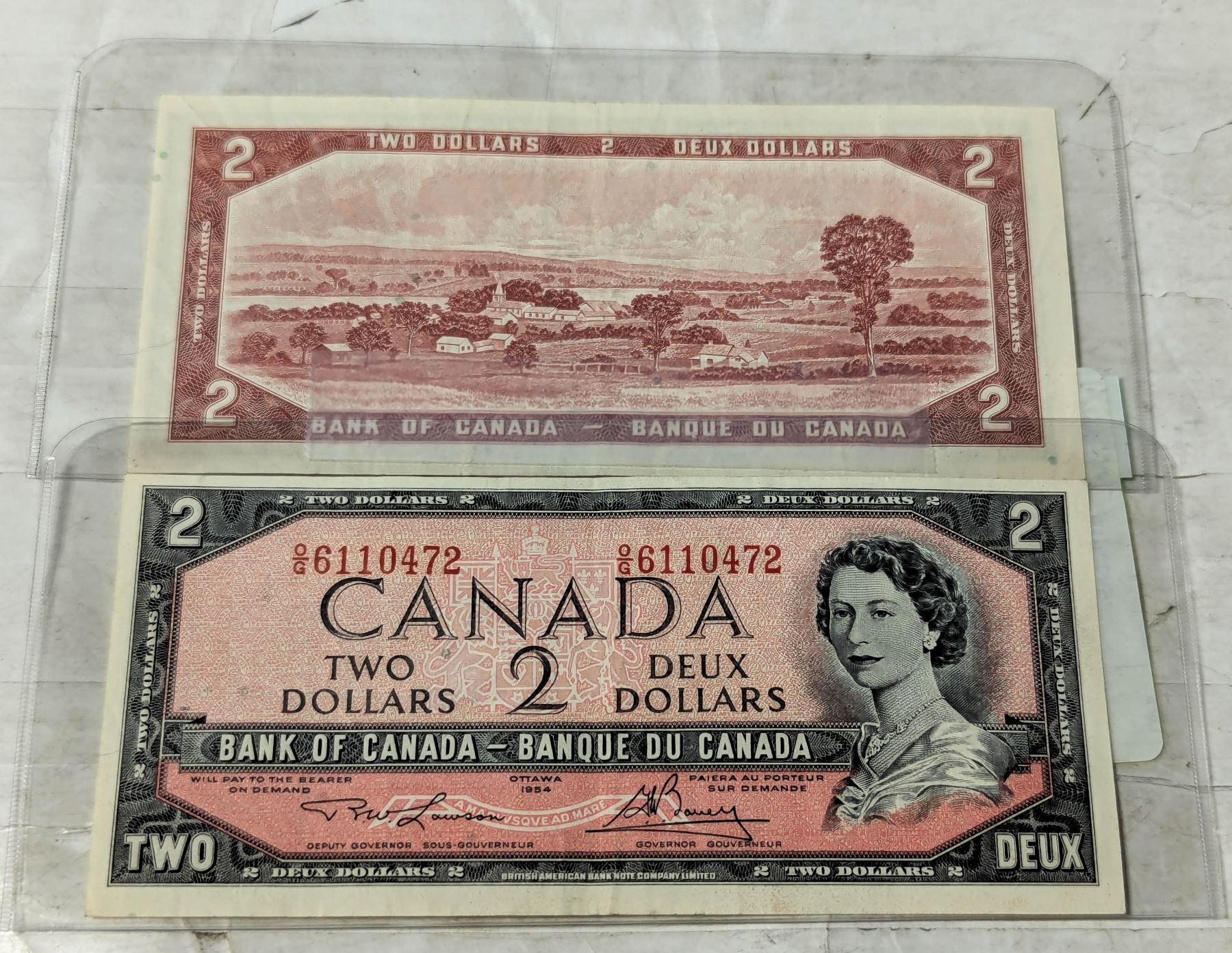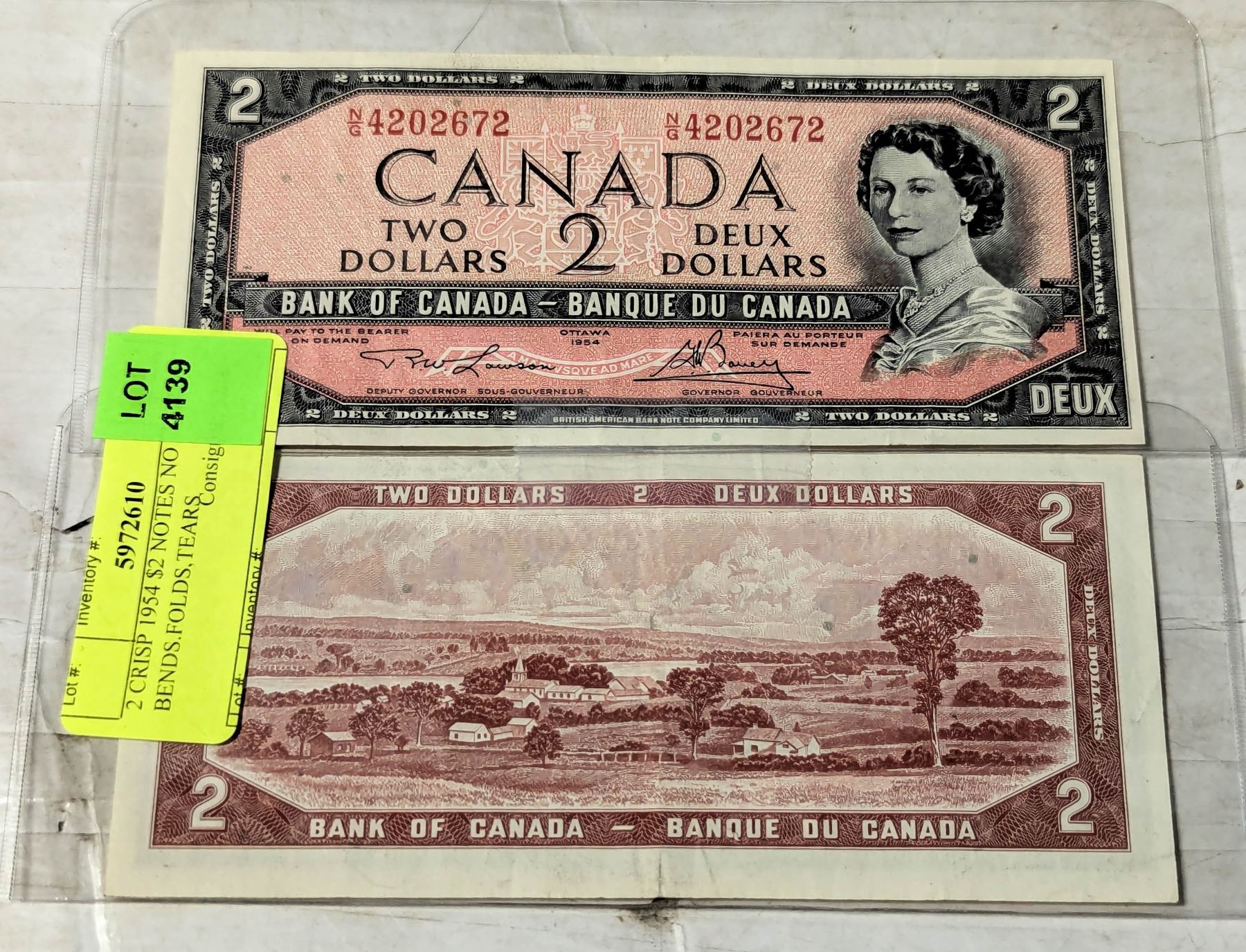 2 CRISP 1954 $2 NOTES NO BENDS.FOLDS,TEARS