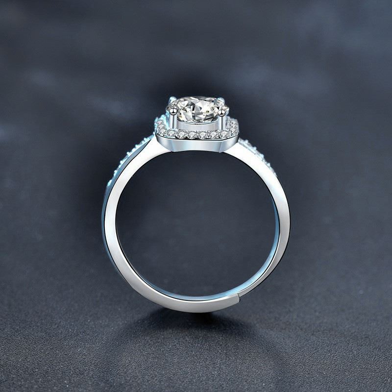 OPEN ADJUSTIBLE SIZE LUXURY RING WITH VVS D COLOR GRADE MOISSANITE STONE. COMES IN BOX WITH ITS GRA CERTIFICATE. XJZ082