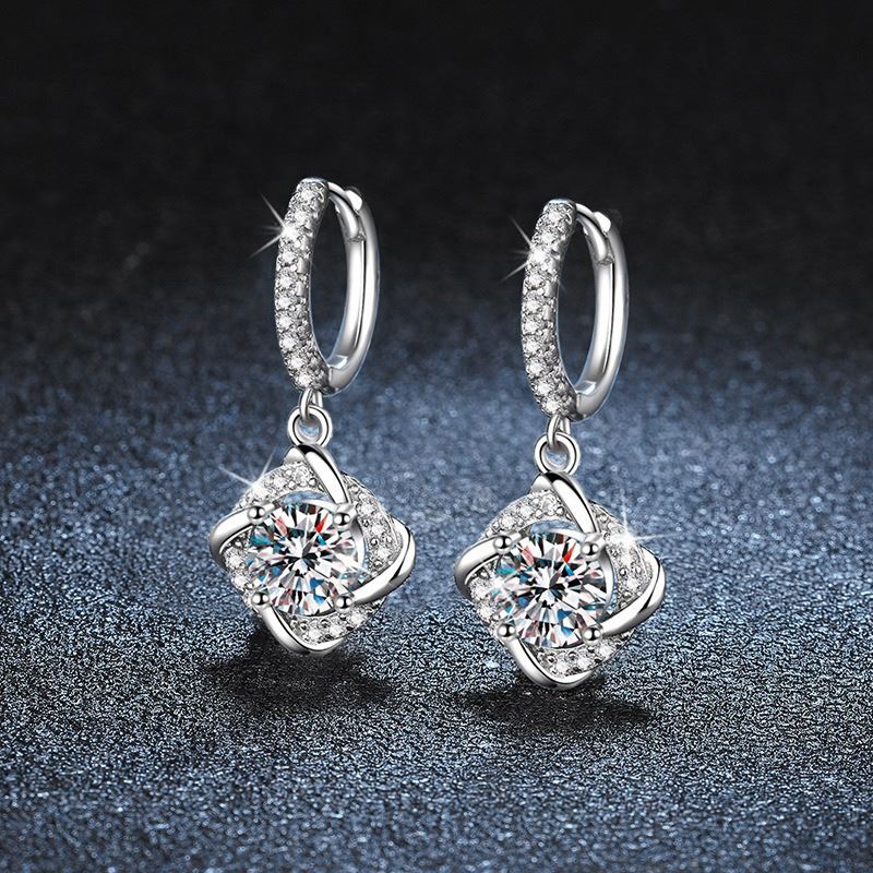 CUT 925S EARRINGS WITH VVS D COLOR GRADE MOISSANITE CENTER STONE. COMES WITH ITS GRA CERTIFICATE. XKZ009