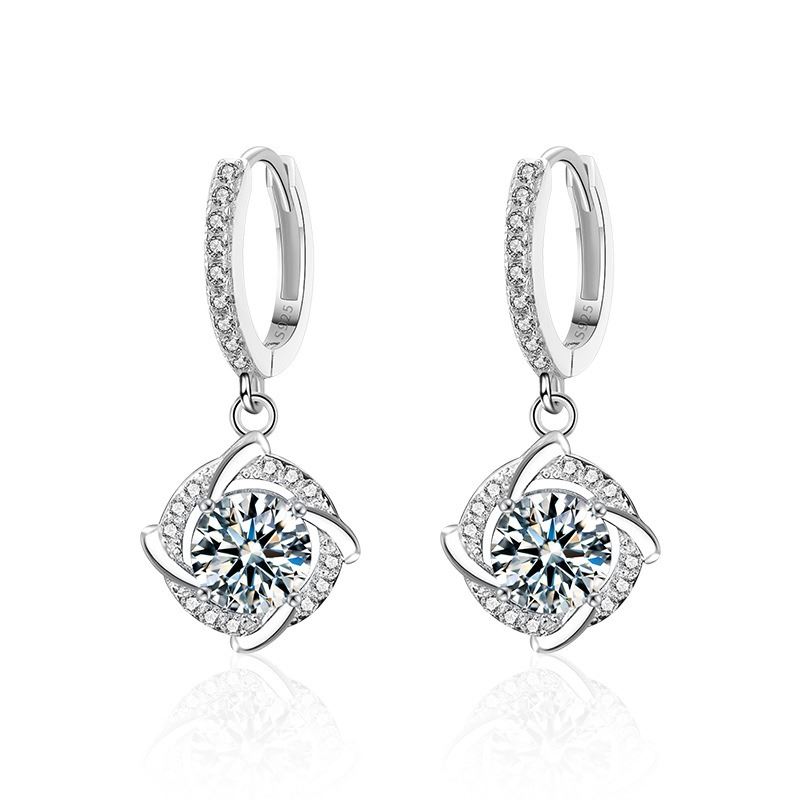CUT 925S EARRINGS WITH VVS D COLOR GRADE MOISSANITE CENTER STONE. COMES WITH ITS GRA CERTIFICATE. XKZ009