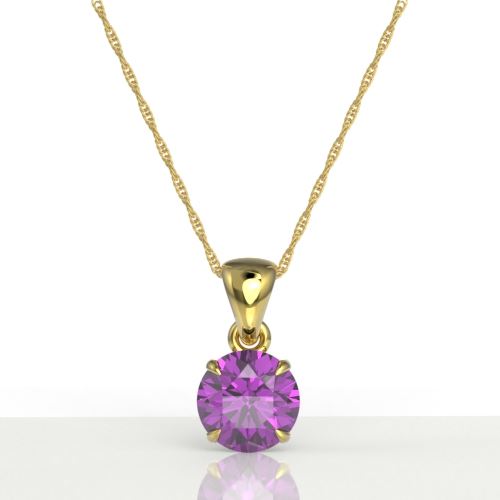 REF-24W9F -22010 ---- 2 CTW Amethyst Designer Inspired Solitaire Necklace 18K Yellow Gold ---- Luxury Designer Brand Necklace Appraised at $1,650 Certificate Number US22010 18k Yellow gold, Necklace Size is 16 Inches, Necklace measuring approx. 8 mm x 8 mm, weighing in total approx. 2.6 grams. Made in the USA and is stamped 18k, Main stone 2 carat total weight containing 1 pieces of Intense Translucent Purple color with AAA quality Round shape cut Amethyst , Stone #2 carat total weight containing pieces of color with quality shape cut