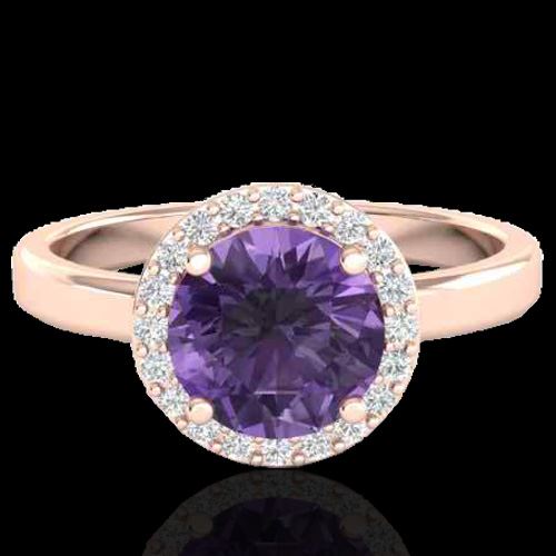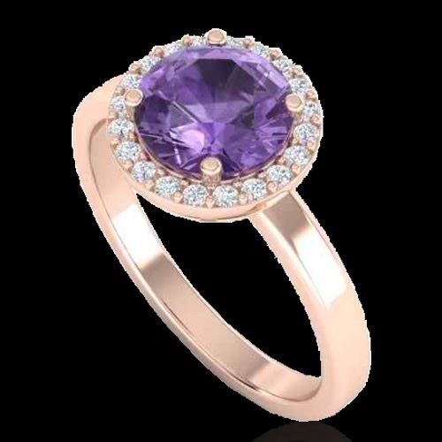 2 CTW Amethyst & Halo VS/SI Diamond Micro Pave Ring Solitaire 14K Rose Gold ---- Luxury Designer Brand Ring Appraised Retail Price at $2,650 ---- SKU Number US21616 14k Rose gold Ring Size is 7, Ring measuring approx. 10 mm round, weighing in total approx. 3.7 grams. Made in the USA and is stamped 14k, Main stone 1.75 carat total weight containing 1 pieces of Intense Translucent Purple color with AAA quality Round shape cut Amethyst , Stone #2 0.25 carat total weight containing 20 pieces of H-I color with VS/SI quality Round shape cut