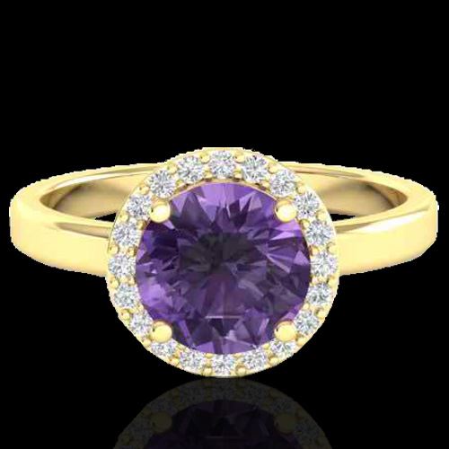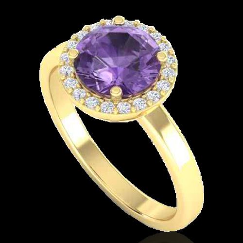 REF-48Y5K -21618 ---- 2 CTW Amethyst & Halo VS/SI Diamond Micro Pave Ring Solitaire 18K Yellow Gold ---- Luxury Designer Brand Ring Appraised at $3,450 Certificate Number US21618 18k Yellow gold, Ring Size is 7, Ring measuring approx. 10 mm round, weighing in total approx. 4 grams. Made in the USA and is stamped 18k, Main stone 1.75 carat total weight containing 1 pieces of Intense Translucent Purple color with AAA quality Round shape cut Amethyst , Stone #2 0.25 carat total weight containing 20 pieces of H-I color with VS/SI quality Round shape cut Diamond