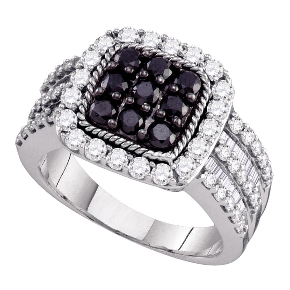 REF-104H9M- SKU: GD70949 ---- 2 CTW Black Color Diamond Square Cluster Ring 10KT White Gold