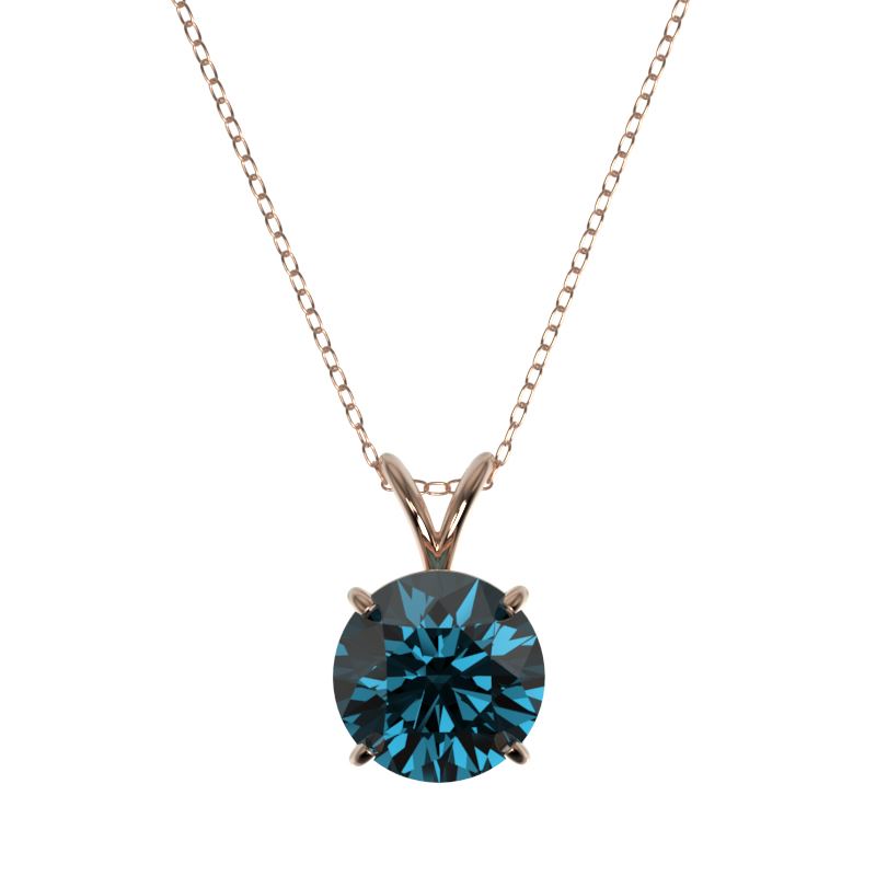 33237 - REF-343A2V ---- 2 CTW Certified Intense Blue SI Diamond Solitaire Necklace 10K Rose Gold ---- Luxury Designer Brand Necklace Appraised at $27,450 Certificate Number US33237 10k Rose gold, Necklace Size is 16 Incehs, Necklace measuring approx. Uniform, weighing in total approx. 2 grams. Made in the USA and is stamped 10k, Main stone 2 carat total weight containing 1 pieces of Intense Fancy Blue color with SI quality Round shape cut Diamond , Stone #2 carat total weight containing pieces of color with quality shape cut