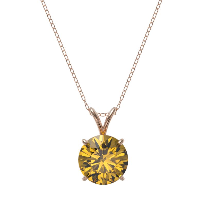 REF-492Y2K -33239 ---- 2 CTW Certified Intense Yellow SI Diamond Solitaire Necklace 10K Rose Gold ---- Luxury Designer Brand Necklace Appraised at $36,100 Certificate Number US33239 10k Rose gold, Necklace Size is 16 Incehs, Necklace measuring approx. Uniform, weighing in total approx. 2 grams. Made in the USA and is stamped 10k, Main stone 2 carat total weight containing 1 pieces of Intense Fancy Yellow color with SI quality Round shape cut Diamond , Stone #2 carat total weight containing pieces of color with quality shape cut