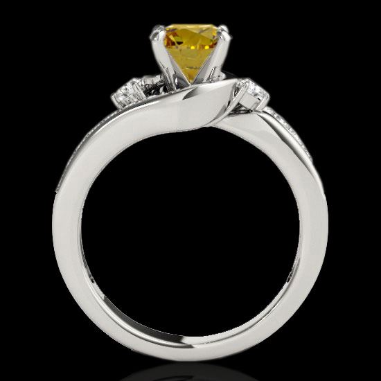 2 CTW Certified Si Fancy Intense Yellow Diamond Bypass Solitaire Ring 10K White Gold ---- Luxury Designer Brand Ring Appraised Retail Price at $16,500 ---- SKU Number US35104 10k White gold Ring Size is 7, Ring measuring approx. Uniform, weighing in total approx. 5 grams. Made in the USA and is stamped 10k, Main stone 1.50 carat total weight containing 1 pieces of Intense Fancy Yellow color with SI quality Round shape cut Diamond , Stone #2 0.5 carat total weight containing 16 pieces of H-I color with VS/SI quality Round shape cut