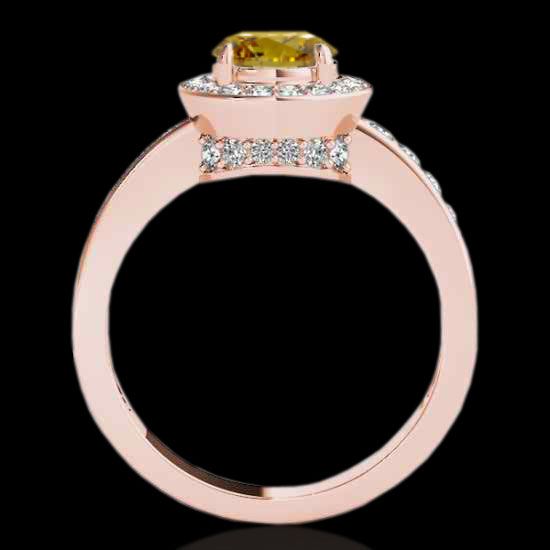 2 CTW Certified Si Fancy Intense Yellow Diamond Solitaire Halo Ring 10K Rose Gold ---- Luxury Designer Brand Ring Appraised Retail Price at $18,700 ---- SKU Number US34359 10k Rose gold Ring Size is 7, Ring measuring approx. Uniform, weighing in total approx. 4.5 grams. Made in the USA and is stamped 10k, Main stone 1.50 carat total weight containing 1 pieces of Intense Fancy Yellow color with SI quality Round shape cut Diamond , Stone #2 0.5 carat total weight containing 36 pieces of H-I color with VS/SI quality Round shape cut