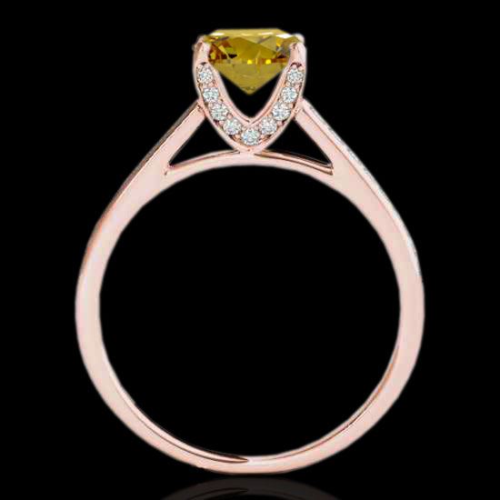 2 CTW Certified Si Fancy Intense Yellow Diamond Solitaire Ring 10K Rose Gold ---- Luxury Designer Brand Ring Appraised Retail Price at $17,050 ---- SKU Number US34861 10k Rose gold Ring Size is 7, Ring measuring approx. Uniform, weighing in total approx. 4 grams. Made in the USA and is stamped 10k, Main stone 1.50 carat total weight containing 1 pieces of Intense Fancy Yellow color with SI quality Round shape cut Diamond , Stone #2 0.5 carat total weight containing 32 pieces of H-I color with VS/SI quality Round shape cut
