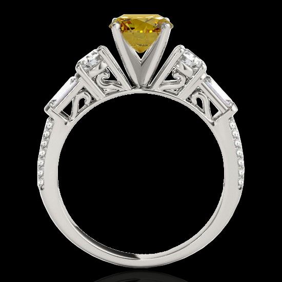 REF-221F8N -35478 ---- 2 CTW Certified Si/I Fancy Intense Yellow Diamond Pave Solitaire Ring 10K White Gold ---- Luxury Designer Brand Ring Appraised at $14,650 Certificate Number US35478 10k White gold, Ring Size is 7, Ring measuring approx. Uniform, weighing in total approx. 4.3 grams. Made in the USA and is stamped 10k, Main stone 1 carat total weight containing 1 pieces of Intense Fancy Yellow color with SI quality Round shape cut Diamond , Stone #2 1 carat total weight containing 46 pieces of H-I color with VS/SI quality Round & Baguette shape cut Diamond