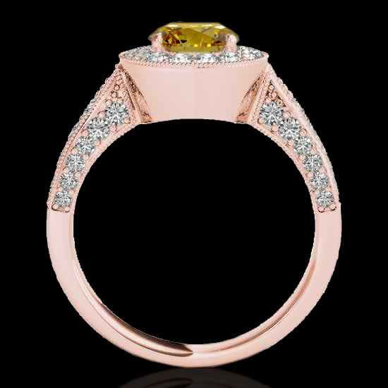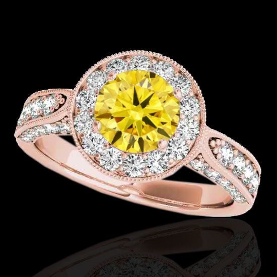 REF-253W6F -34503 ---- 2 CTW Certified Si/I Fancy Intense Yellow Diamond Solitaire Halo Ring 10K Rose Gold ---- Luxury Designer Brand Ring Appraised at $16,750 Certificate Number US34503 10k Rose gold, Ring Size is 7, Ring measuring approx. Uniform, weighing in total approx. 5.6 grams. Made in the USA and is stamped 10k, Main stone 1 carat total weight containing 1 pieces of Intense Fancy Yellow color with SI quality Round shape cut Diamond , Stone #2 1 carat total weight containing 46 pieces of H-I color with VS/SI quality Round shape cut Diamond
