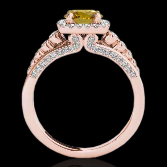 REF-309H3A -34327 ---- 2 CTW Certified Si/I Fancy Intense Yellow Diamond Solitaire Halo Ring 10K Rose Gold ---- Luxury Designer Brand Ring Appraised at $18,700 Certificate Number US34327 10k Rose gold, Ring Size is 7, Ring measuring approx. Uniform, weighing in total approx. 5.6 grams. Made in the USA and is stamped 10k, Main stone 1.25 carat total weight containing 1 pieces of Intense Fancy Yellow color with SI quality Round shape cut Diamond , Stone #2 0.75 carat total weight containing 70 pieces of H-I color with VS/SI quality Round shape cut Diamond