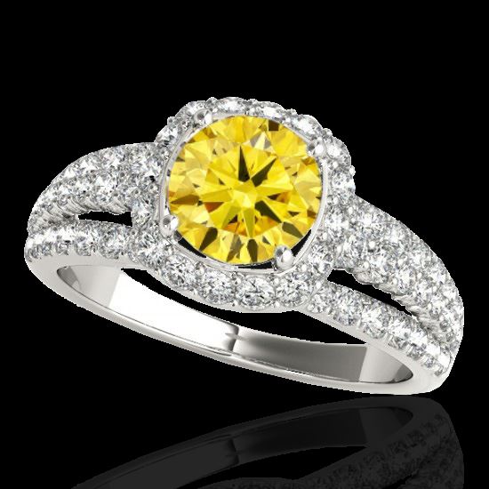 REF-180W2F -34005 ---- 2 CTW Certified Si/I Fancy Intense Yellow Diamond Solitaire Halo Ring 10K White Gold ---- Luxury Designer Brand Ring Appraised at $11,900 Certificate Number US34005  10k White gold,  Ring Size is 7, Ring measuring approx. Uniform, weighing in total approx. 5.7 grams. Made in the USA and is stamped 10k, Main stone 1 carat total weight containing 1 pieces of Intense Fancy Yellow color with SI  quality Round shape cut Diamond , Stone #2 1 carat total weight containing 60 pieces of H-I color with  VS/SI quality Round shape cut Diamond