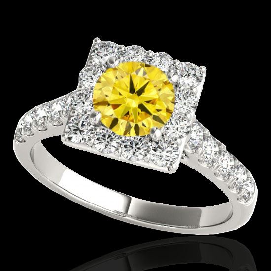 REF-210X9T -34139 ---- 2 CTW Certified Si/I Fancy Intense Yellow Diamond Solitaire Halo Ring 10K White Gold ---- Luxury Designer Brand Ring Appraised at $13,900 Certificate Number US34139 10k White gold, Ring Size is 7, Ring measuring approx. Uniform, weighing in total approx. 5.7 grams. Made in the USA and is stamped 10k, Main stone 1 carat total weight containing 1 pieces of Intense Fancy Yellow color with SI quality Round shape cut Diamond , Stone #2 1 carat total weight containing 22 pieces of H-I color with VS/SI quality Round shape cut Diamond