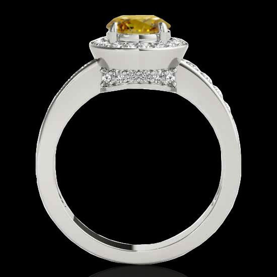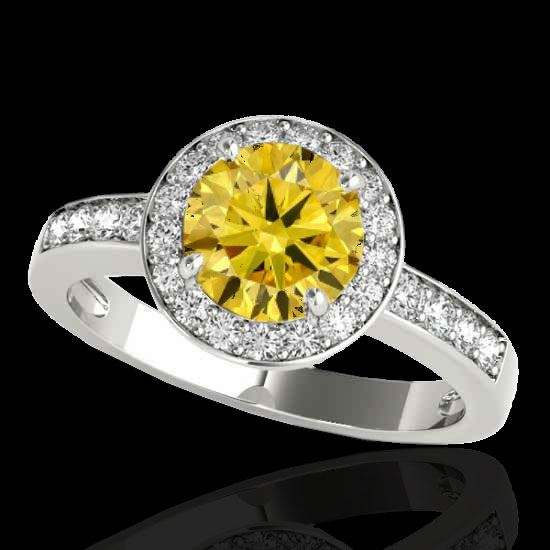 REF-355T5M -34358 ---- 2 CTW Certified Si/I Fancy Intense Yellow Diamond Solitaire Halo Ring 10K White Gold ---- Luxury Designer Brand Ring Appraised at $21,500 Certificate Number US34358  10k White gold,  Ring Size is 7, Ring measuring approx. Uniform, weighing in total approx. 4.5 grams. Made in the USA and is stamped 10k, Main stone 1.5 carat total weight containing 1 pieces of Intense Fancy Yellow color with SI  quality Round shape cut Diamond , Stone #2 0.5 carat total weight containing 36 pieces of H-I color with  VS/SI quality Round shape cut Diamond