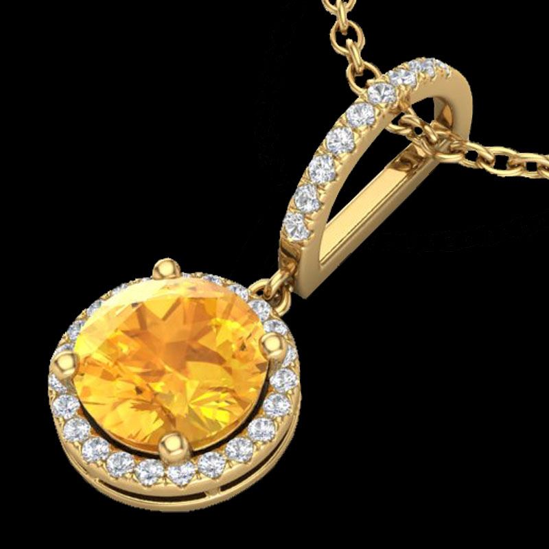 2 CTW Citrine & Micro Pave VS/SI Diamond Necklace Designer Halo 18K Yellow Gold ---- Luxury Designer Brand Necklace Appraised Retail Price at $3,600 ---- SKU Number US23194 18k Yellow gold Necklace Size is 16 Inches, Necklace measuring approx. 1/2"x1/2", weighing in total approx. 4.5 grams. Made in the USA and is stamped 18k, Main stone 1.75 carat total weight containing 1 pieces of Translucent Yellow color with AAA quality Round shape cut Citrine , Stone #2 0.25 carat total weight containing 34 pieces of H-I color with VS/SI quality Round shape cut