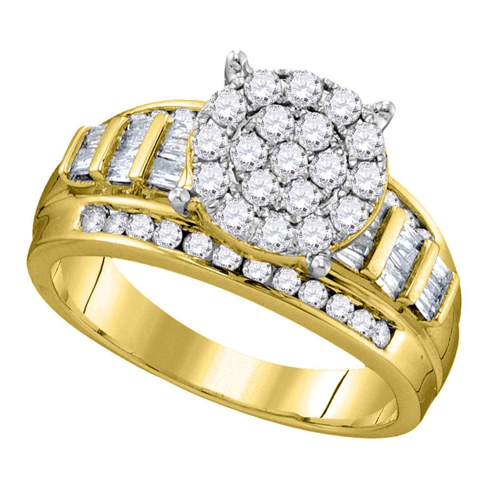 REF-134N9F- SKU: GD114997 ---- 2 CTW Diamond Cluster Bridal Engagement Ring 10KT Yellow Gold