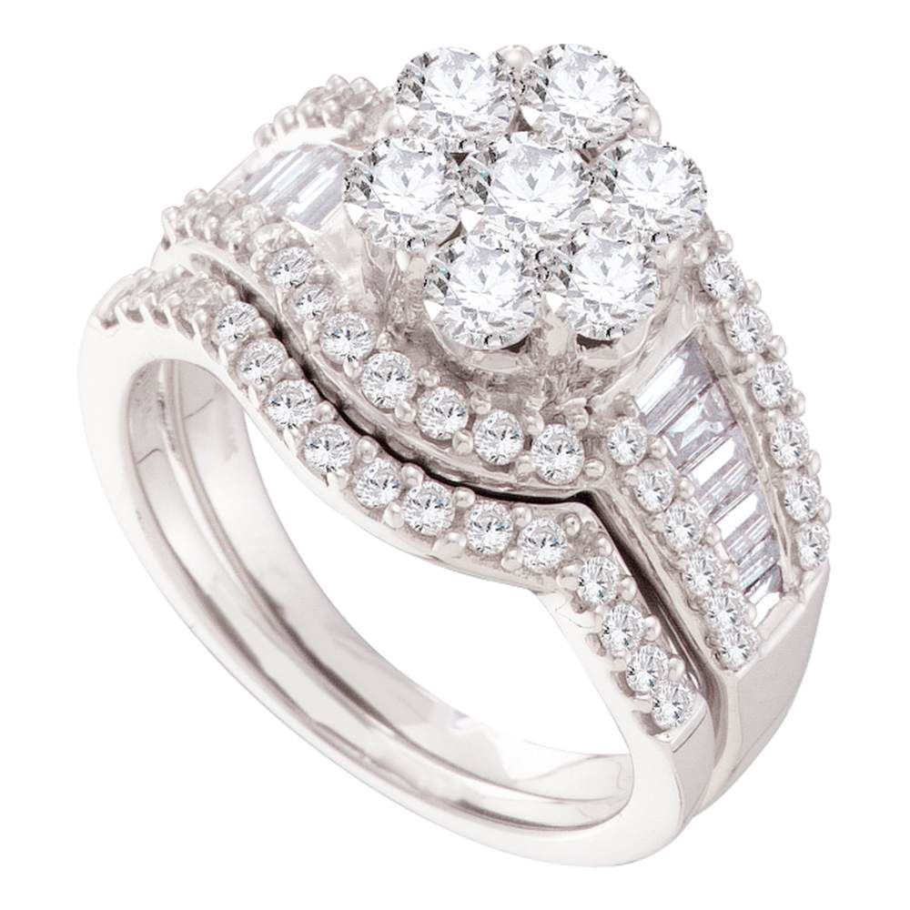 REF-224H9M- SKU: GD44426 ---- 2 CTW Diamond Cluster Bridal Engagement Ring 14KT White Gold