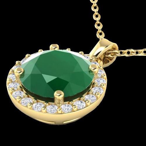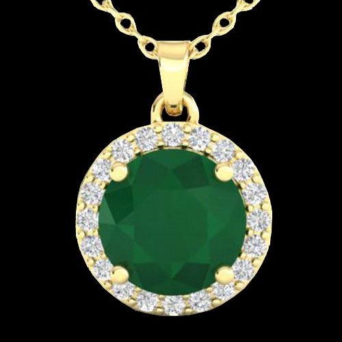 REF-49W3F -21561 ---- 2 CTW Emerald & Halo VS/SI Diamond Micro Pave Necklace Solitaire 18K Yellow Gold ---- Luxury Designer Brand Necklace Appraised at $3,250 Certificate Number US21561 18k Yellow gold, Necklace Size is 16 Inches, Necklace measuring approx. 10 mm round, weighing in total approx. 2.8 grams. Made in the USA and is stamped 18k, Main stone 1.75 carat total weight containing 1 pieces of Intense Green color with AAA quality Round shape cut Emerald , Stone #2 0.25 carat total weight containing 20 pieces of H-I color with VS/SI quality Round shape cut Diamond