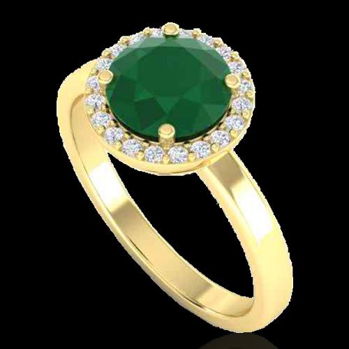 REF-58A2X -21629 ---- 2 CTW Emerald & Halo VS/SI Diamond Micro Pave Ring Solitaire 18K Yellow Gold ---- Luxury Designer Brand Ring Appraised at $3,850 Certificate Number US21629  18k Yellow gold,  Ring Size is 7, Ring measuring approx. 10 mm round, weighing in total approx. 4 grams. Made in the USA and is stamped 18k, Main stone 1.75 carat total weight containing 1 pieces of Intense Green color with AAA quality Round shape cut Emerald , Stone #2 0.25 carat total weight containing 20 pieces of H-I color with  VS/SI quality Round shape cut Diamond