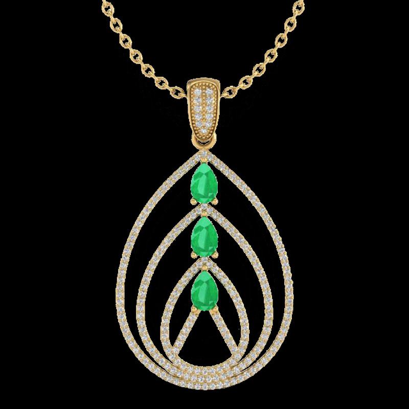 2 CTW Emerald & Micro Pave VS/SI Diamond Designer Necklace 18K Yellow Gold ---- Luxury Designer Brand Necklace Appraised Retail Price at $9,550 ---- SKU Number US22468 18k Yellow gold Necklace Size is 16 Inches, Necklace measuring approx. 1 1/2" X 1" , weighing in total approx. 8.5 grams. Made in the USA and is stamped 18k, Main stone 0.75 carat total weight containing 3 pieces of Intense Green color with AAA quality Pear shape cut Emerald , Stone #2 1.25 carat total weight containing 180 pieces of H-I color with VS/SI quality Round shape cut