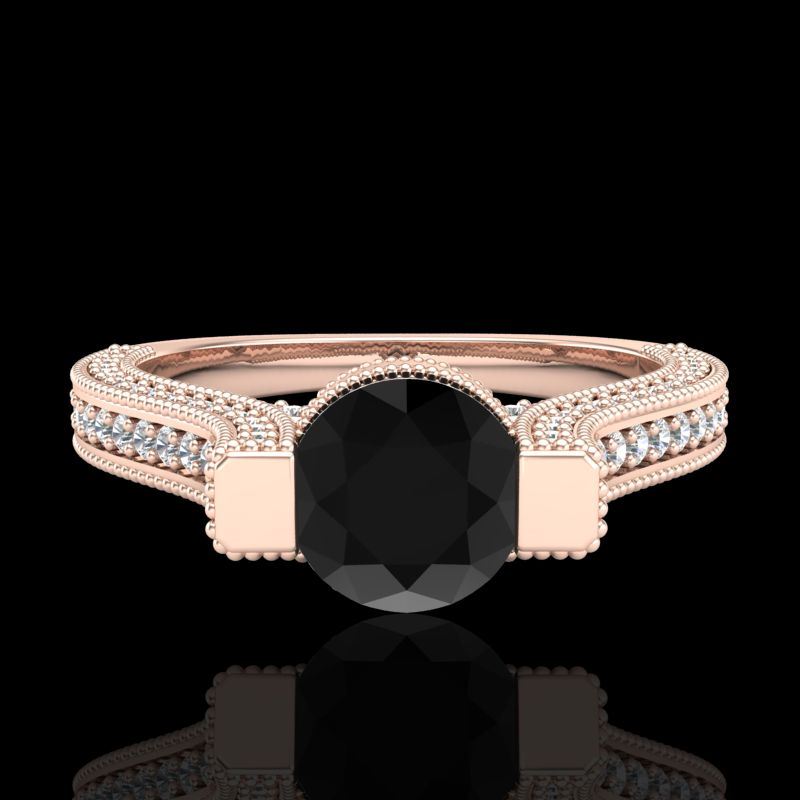 REF-160X2T -37619 ---- 2 CTW Fancy Black Diamond Solitaire Engagement Micro Pave Ring 18K Rose Gold ---- Luxury Designer Brand Ring Appraised at $9,700 Certificate Number US37619 18k Rose gold, Ring Size is 7, Ring measuring approx. Uniform, weighing in total approx. 8.5 grams. Made in the USA and is stamped 18k, Main stone 0.75 carat total weight containing 1 pieces of Black Opaque color with VS quality Round shape cut Diamond , Stone #2 1.25 carat total weight containing 117 pieces of H-I color with VS/SI quality Round shape cut Diamond