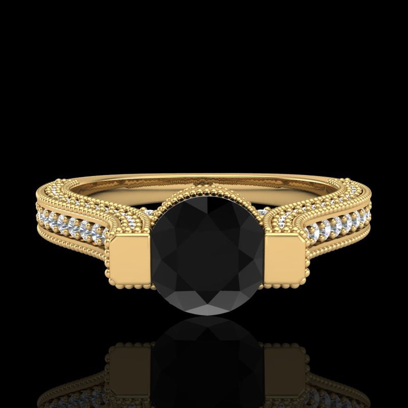 REF-160H2A -37620 ---- 2 CTW Fancy Black Diamond Solitaire Engagement Micro Pave Ring 18K Yellow Gold ---- Luxury Designer Brand Ring Appraised at $9,700 Certificate Number US37620 18k Yellow gold, Ring Size is 7, Ring measuring approx. Uniform, weighing in total approx. 8.5 grams. Made in the USA and is stamped 18k, Main stone 0.75 carat total weight containing 1 pieces of Black Opaque color with VS quality Round shape cut Diamond , Stone #2 1.25 carat total weight containing 117 pieces of H-I color with VS/SI quality Round shape cut Diamond