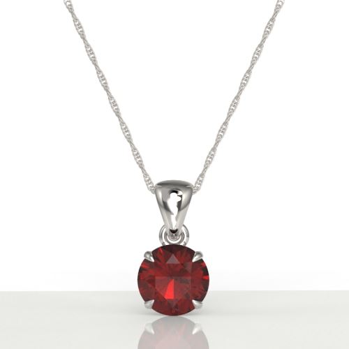 REF-24W5F -22023 ---- 2 CTW Garnet Designer Inspired Solitaire Necklace 18K White Gold ---- Luxury Designer Brand Necklace Appraised at $1,500 Certificate Number US22023 18k White gold, Necklace Size is 16 Inches, Necklace measuring approx. 8 mm x 8 mm, weighing in total approx. 2.6 grams. Made in the USA and is stamped 18k, Main stone 2 carat total weight containing 1 pieces of Saturated purplish Red color with AAA quality Round shape cut Garnet , Stone #2 carat total weight containing pieces of color with quality shape cut