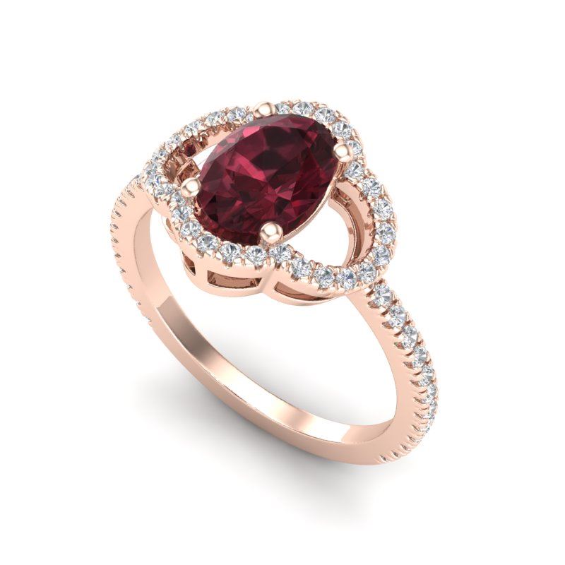 REF-33Y3K -20983 ---- 2 CTW Garnet & Micro Pave VS/SI Diamond Ring 10K Rose Gold ---- Luxury Designer Brand Ring Appraised at $2,000 Certificate Number US20983 10k Rose gold, Ring Size is 6.5, Ring measuring approx. 1/2"X1/2" , weighing in total approx. 3.2 grams. Made in the USA and is stamped 10k, Main stone 1.67 carat total weight containing 1 pieces of Saturated purplish Red color with AAA quality Oval shape cut Garnet , Stone #2 0.33 carat total weight containing 44 pieces of H-I color with VS/SI quality Round shape cut Diamond
