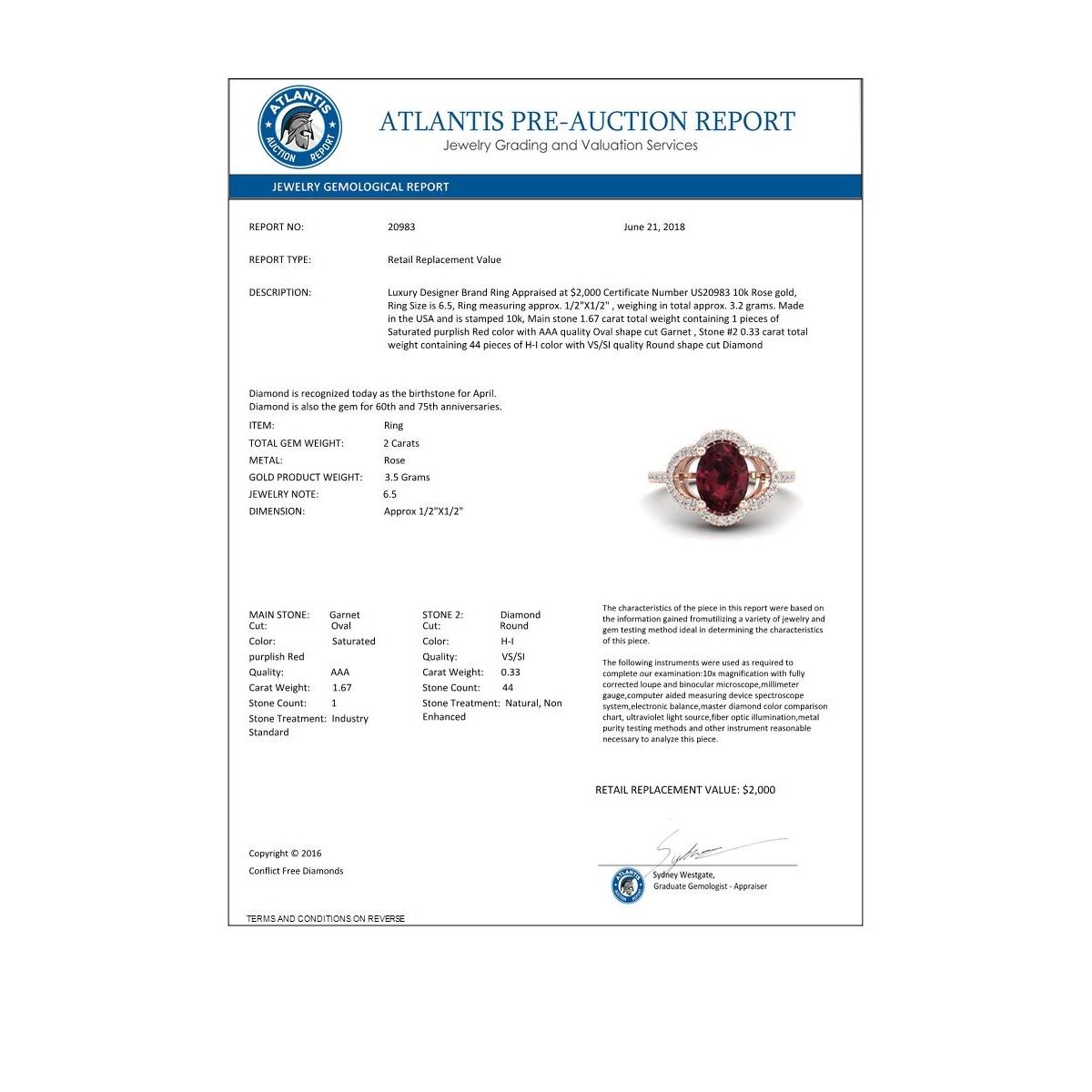 Total Gem weight: 2 carats